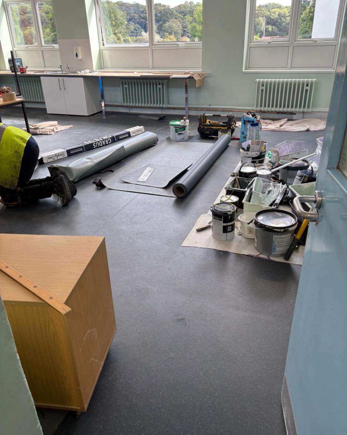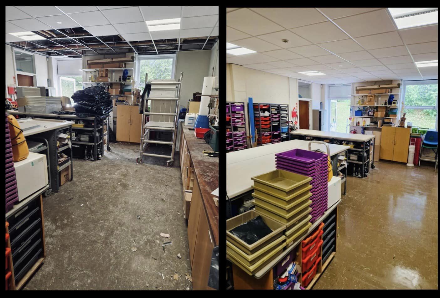 Post construction clean that we did at Stoke Damerel Community College for Obedair Construction. It involved cleaning up after construction and refurbishments had taken place in the food technology department, which also needed a hygiene clean, as well as corridors, classrooms and toilets.